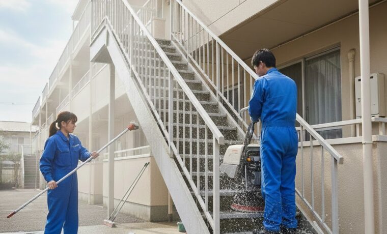清潔感のある身だしなみで、物件の安心感を高めます。 - 安心・安全な作業: 作業中の通行妨害防止や、機材の取り扱いによる騒音・